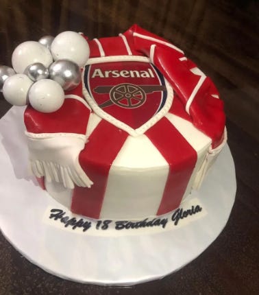 Recently turned 18 (grandma mode activated) and had to have an Arsenal cake!